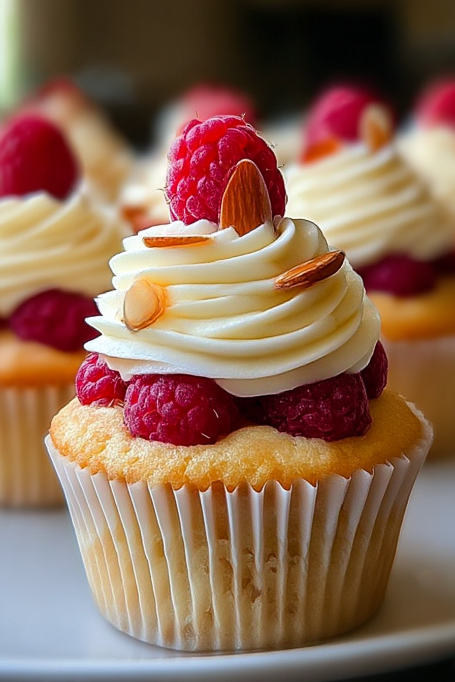 Almond Wedding Cake Cupcakes with Raspberry Filling