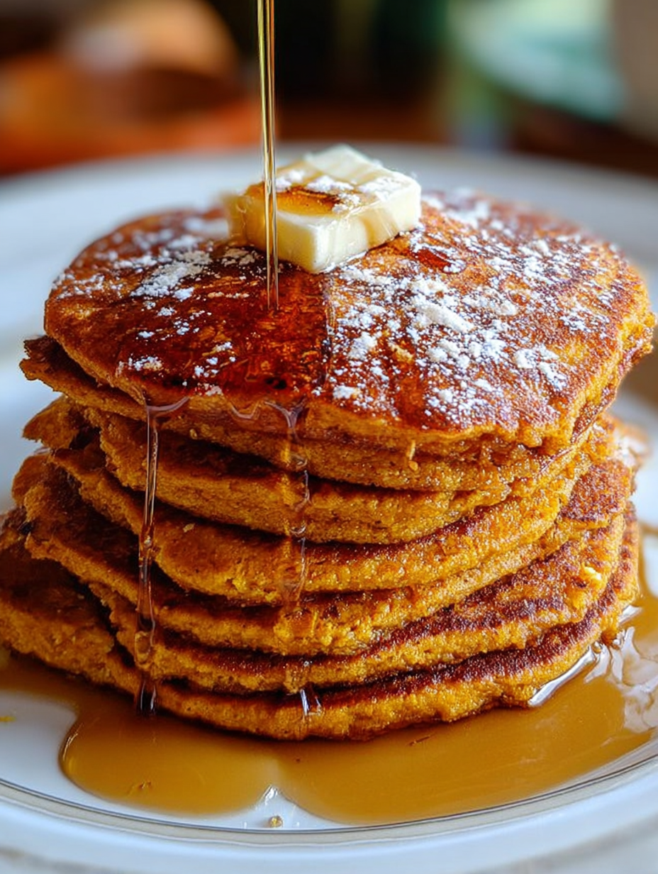 Pumpkin Pancakes with Maple Syrup Drizzle