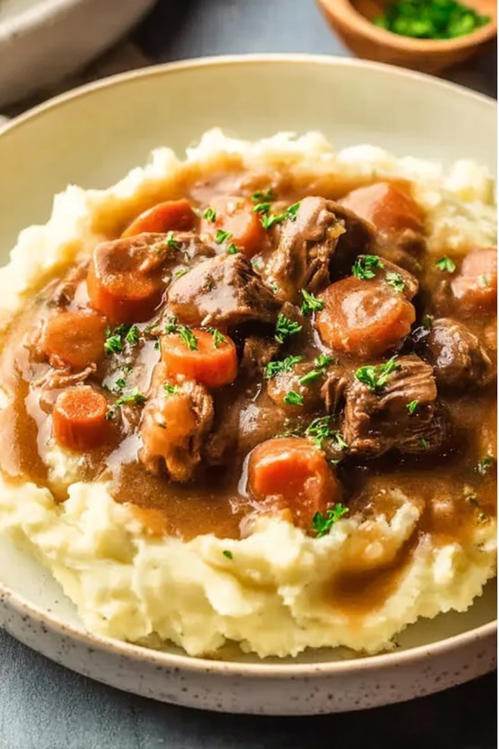 Cozy Up with Fall Apple Cider Stew over Mashed Potatoes
