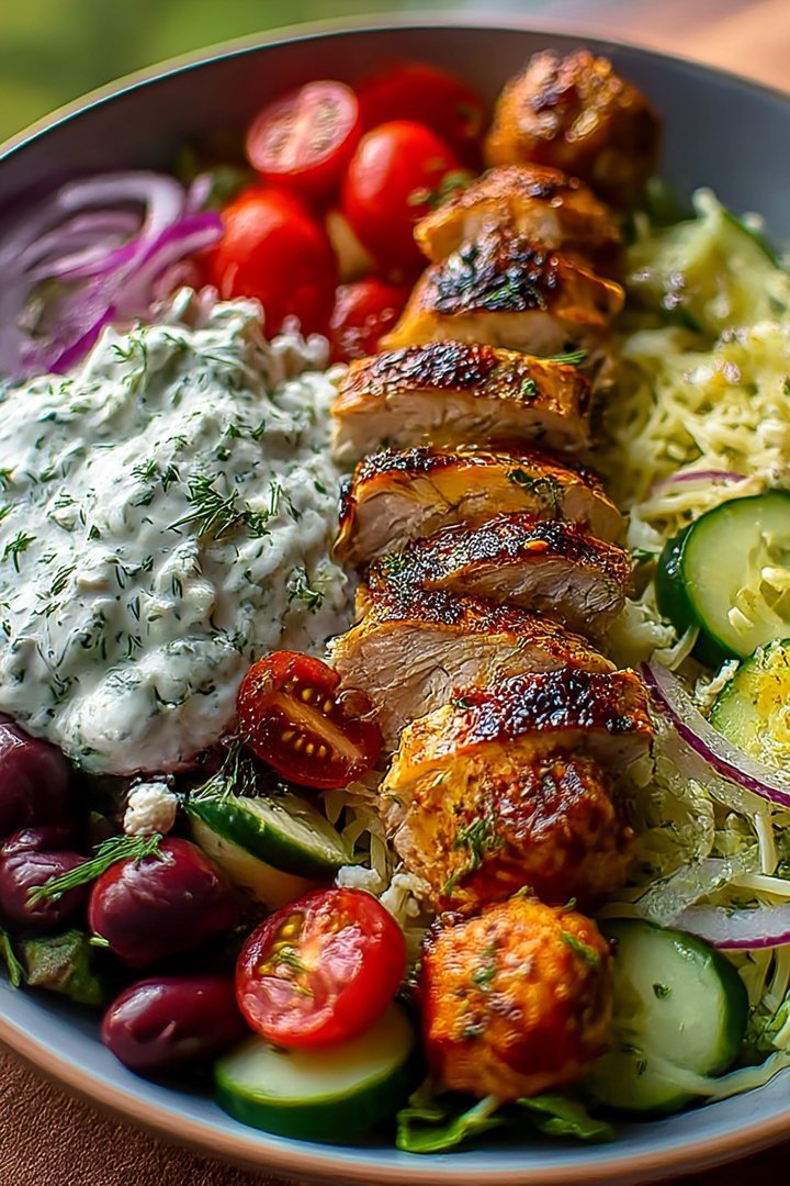 Grilled Chicken Greek Salad with Tzatziki