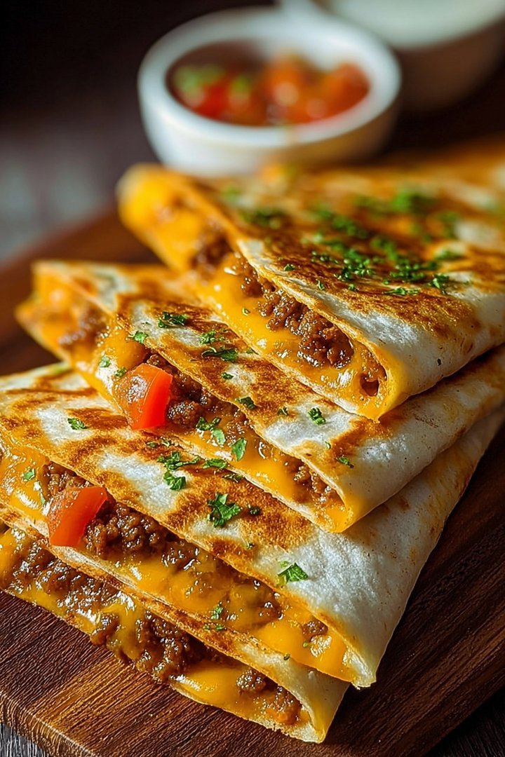 These cheesy, beefy quesadillas are perfect for a quick lunch, easy dinner, or fun appetizer. Enjoy every bite!
