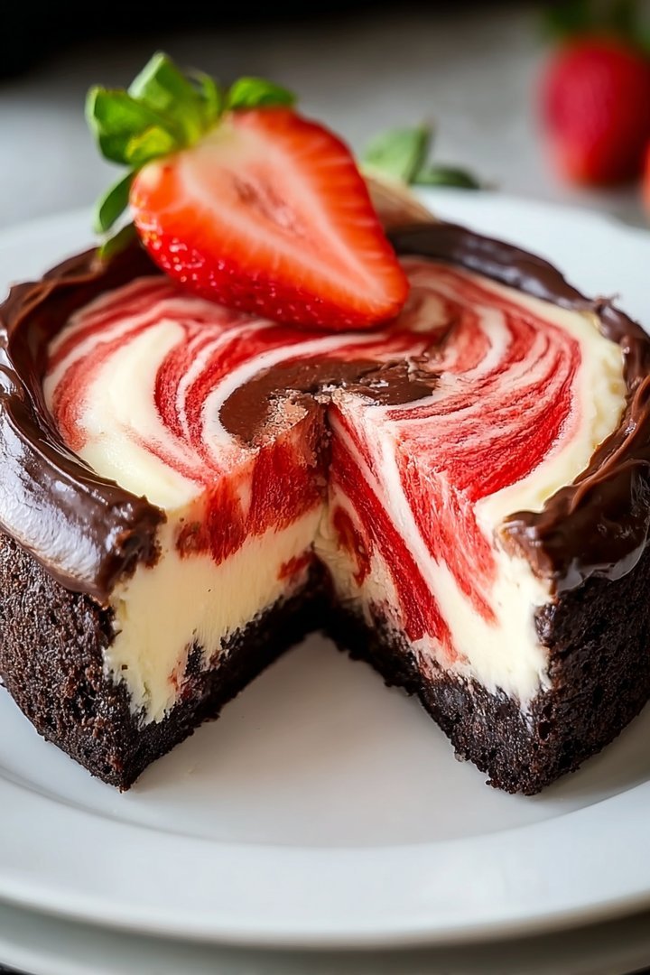 What makes this Chocolate Strawberry Swirl Cheesecake so special?