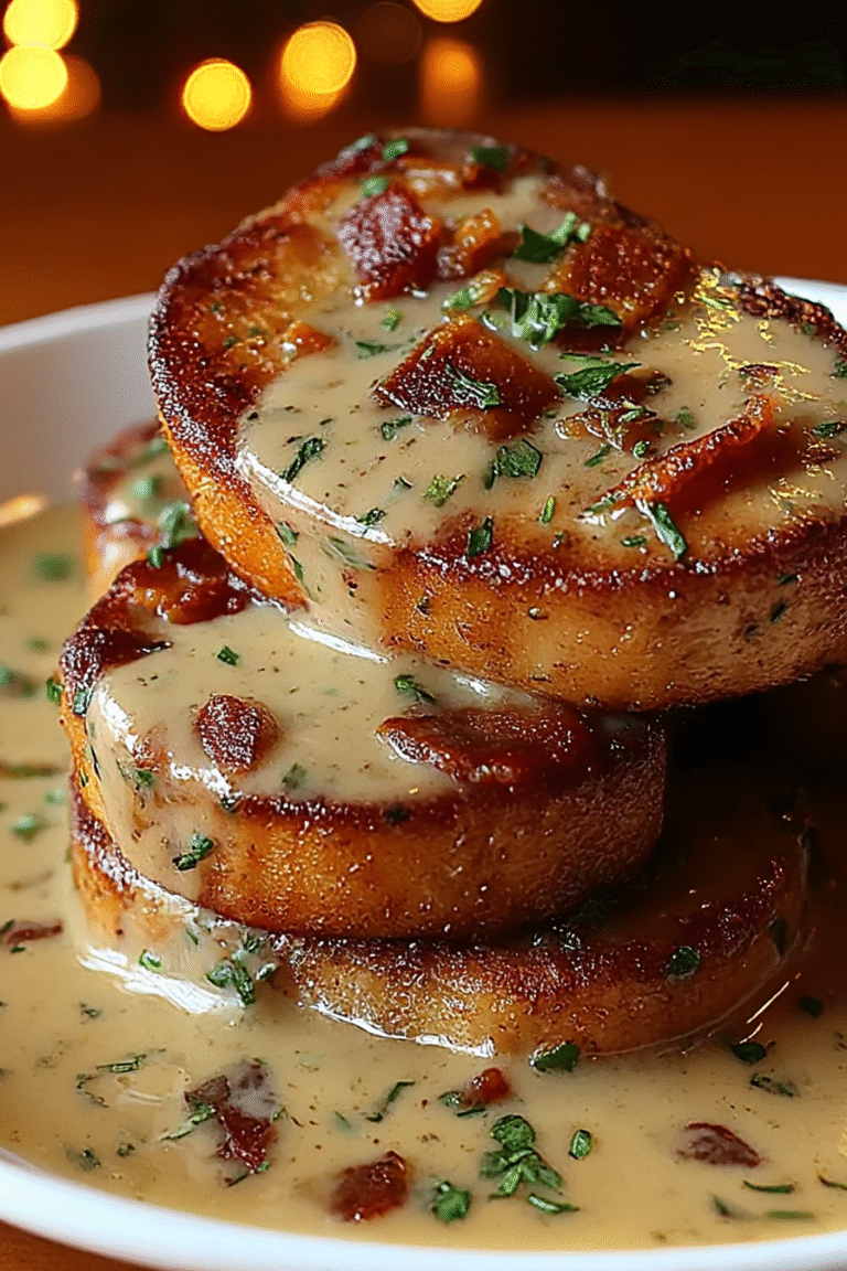 You bet! The gravy can be made ahead of time and reheated before serving. In fact, the flavors often meld beautifully overnight, becoming even more delicious! Store the gravy in an airtight container in the refrigerator. When reheating, do it gently over low heat, stirring occasionally to prevent sticking and ensure even heating. Avoid boiling, as this can cause the gravy to separate.