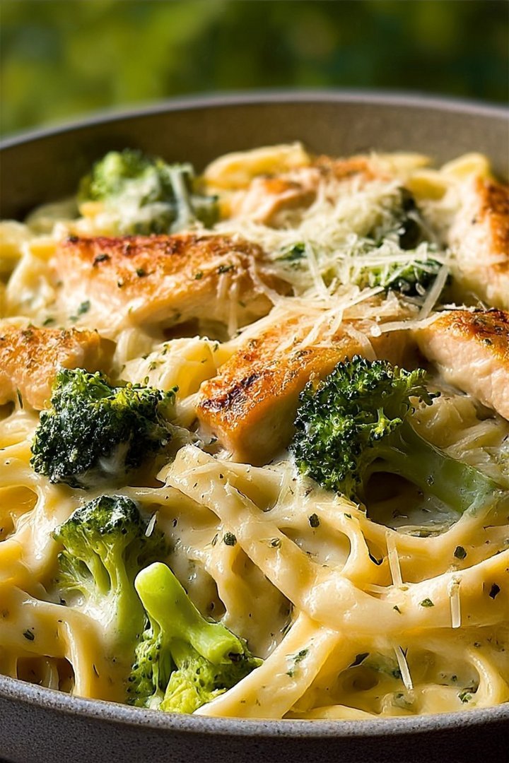 Delicious creamy chicken broccoli alfredo pasta recipe with detailed instructions and nutritional information.