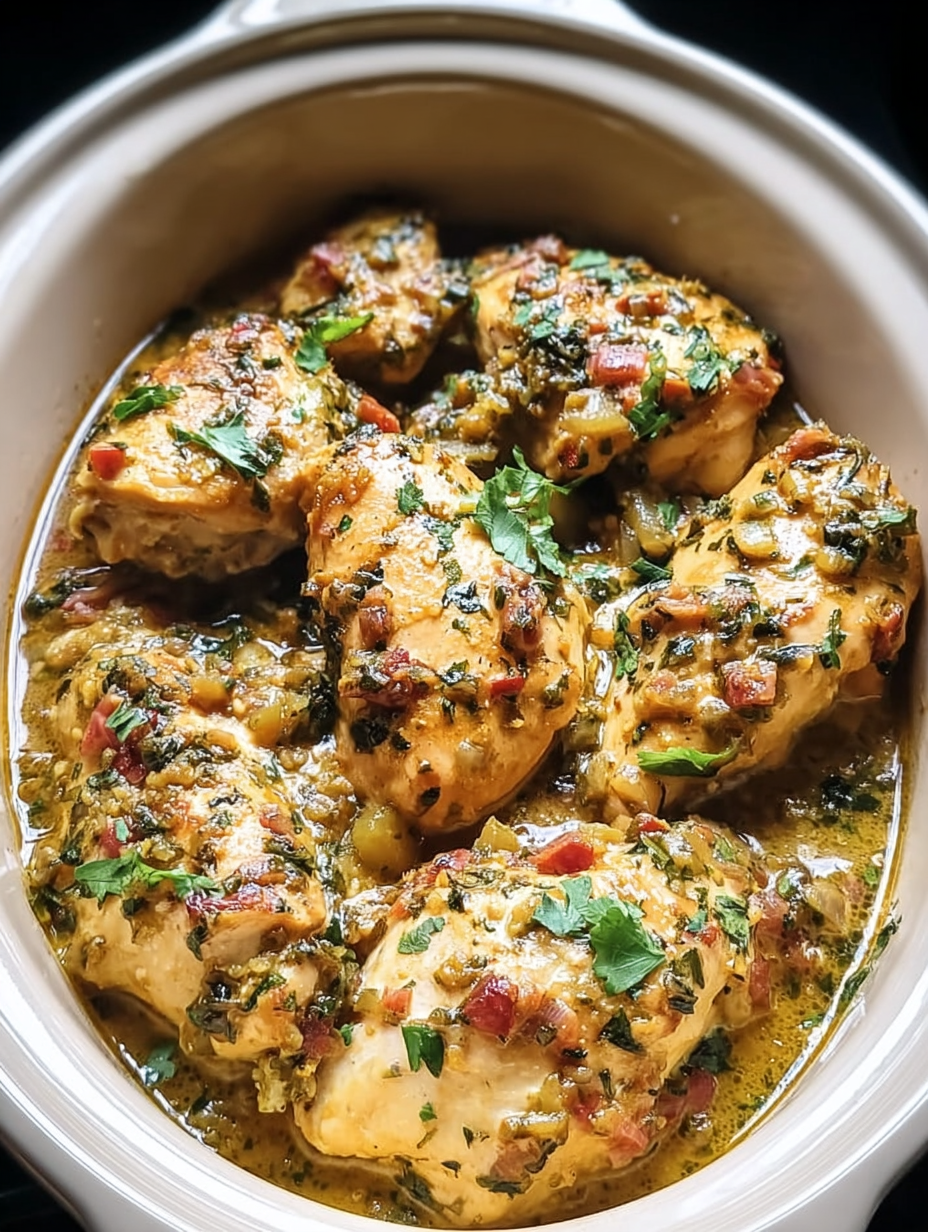4. Slow Cook: Cover and cook on low for 6-8 hours or high for 3-4 hours, until chicken is cooked through.