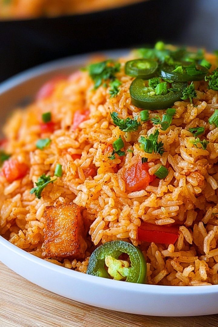 • With its colorful mix of rice, tomatoes, and seasonings, this dish looks as good as it tastes, making it a visually appealing addition to any meal.