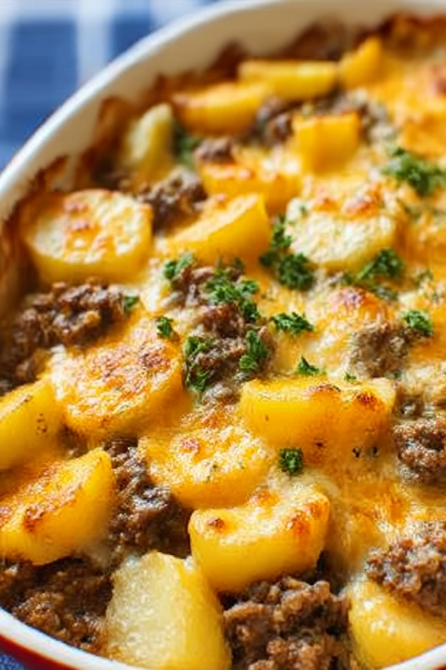 Picture this: a warm, bubbly Ground Beef Casserole Potatoes, fresh from the oven, its cheesy topping golden brown and begging to be devoured. The aroma of savory beef, tender potatoes, and melted cheese fills the air, promising comfort in every bite.