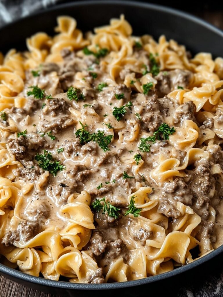 Garnish with fresh parsley before serving. Enjoy your delicious Ground Beef Stroganoff while it’s warm. This dish is perfect served immediately, allowing you to savor the creamy sauce and tender beef.