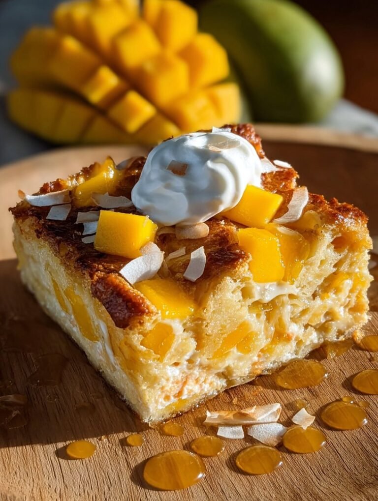 This recipe for Mango Coconut Bread Pudding proves that kitchen accidents often lead to the greatest triumphs. It’s a delightful fusion of creamy richness and bright, tropical flavor, turning humble ingredients like stale bread and canned coconut milk into an elegant dessert.