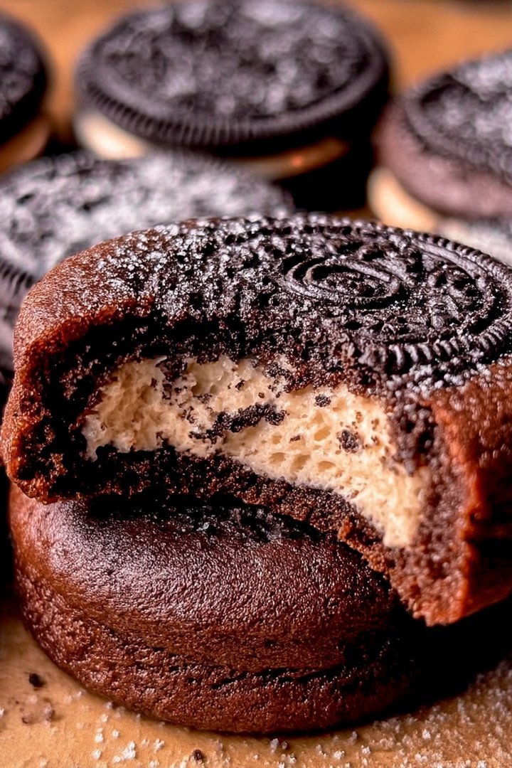 Preheat your oven to 350°F (175°C). Place the Oreo halves with the cream filling on a baking sheet lined with parchment paper. Spoon a generous amount of the cheesecake mixture on top of each cream-filled Oreo.