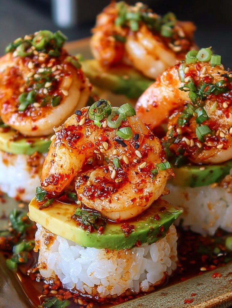 These Spicy Shrimp Sushi Stacks are a delightful and impressive appetizer that’s surprisingly easy to make. They offer a perfect balance of flavors and textures, from the savory shrimp to the creamy avocado and the subtly sweet rice. Remember to prep ingredients in advance, customize the spice level to your liking, and don’t be afraid to get creative with toppings. With a little practice, you’ll be whipping up these tasty stacks in no time, becoming the star of your next party.