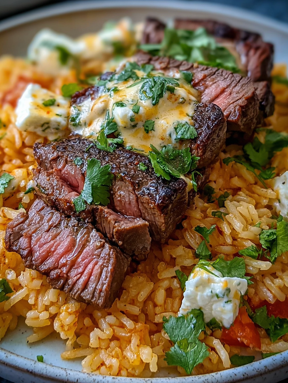 Picture this: tender, juicy steak mingling with creamy, dreamy cheese sauce, all snuggled up with fluffy, perfectly cooked rice. Are you drooling yet? Because I sure am. This isn’t just a recipe; it’s an experience. It’s the kind of dish that makes you want to kick off your shoes, put on some comfy pants, and settle in for a night of pure, unadulterated bliss.