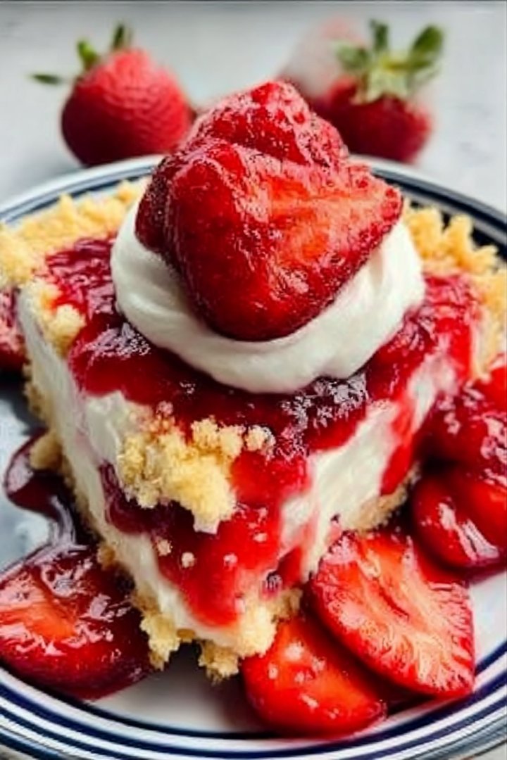 This Strawberry Cheesecake Dump Cake is truly a champion in the world of desserts. It’s incredibly easy to make, requiring minimal effort and ingredients, yet the result is a delightful combination of flavors and textures. The buttery cake mix crust, the creamy cheesecake filling, and the burst of juicy strawberries create a symphony of deliciousness in every bite. Perfect for potlucks, family gatherings, or even just a simple weeknight treat, this dump cake is guaranteed to impress!